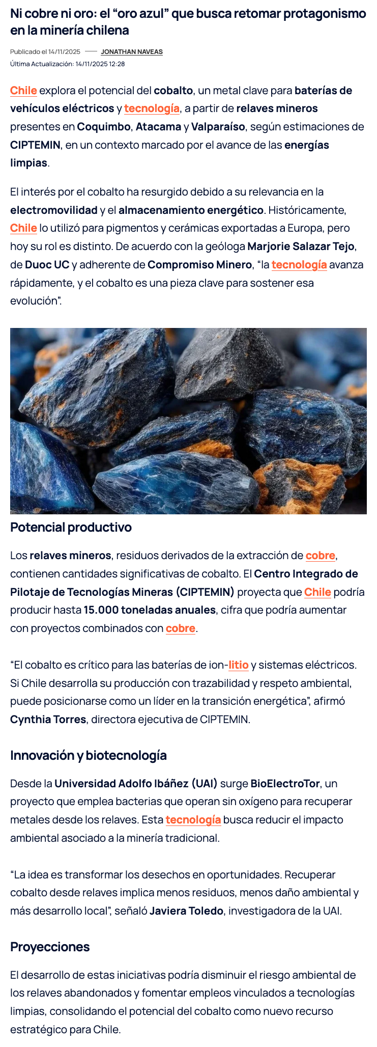 De desecho minero a “tesoro azul”: la segunda vida del cobalto chileno y su rol para un futuro sostenible - (g5noticias.cl)
