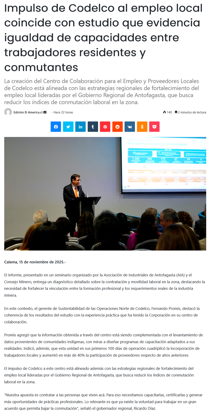 Impulso de Codelco al empleo local coincide con estudio que evidencia igualdad de capacidades entre trabajadores residentes y conmutantes - (radioallen.cl)