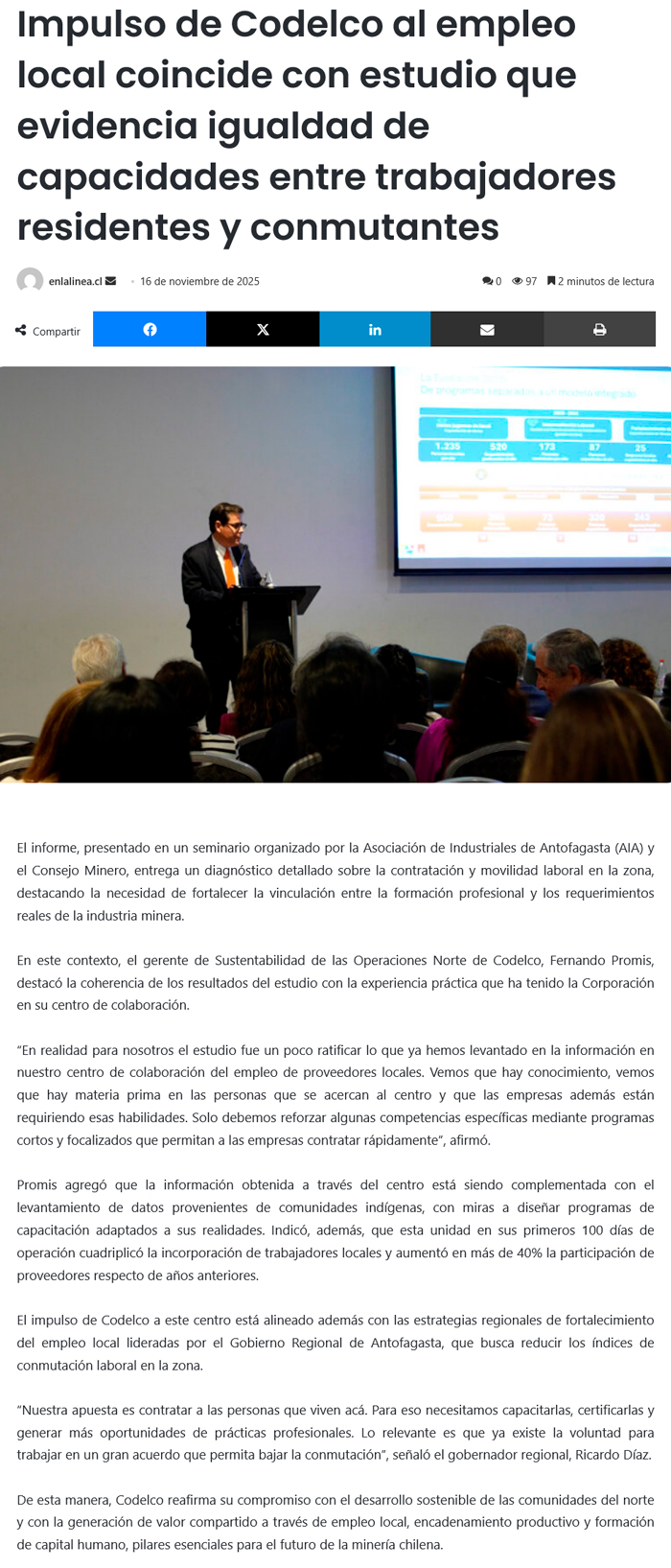 Impulso de Codelco al empleo local coincide con estudio que evidencia igualdad de capacidades entre trabajadores residentes y conmutantes - (radioallen.cl)