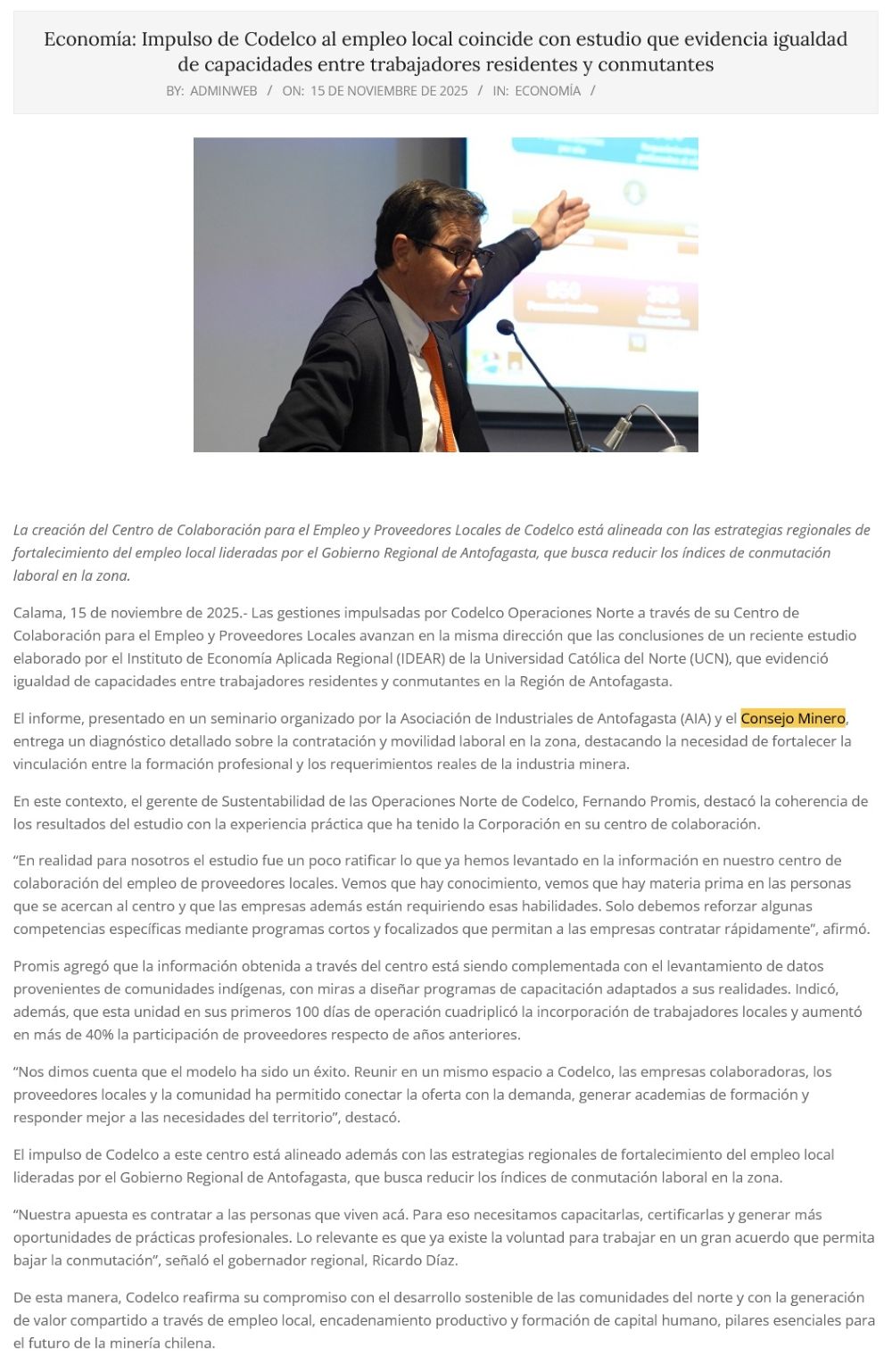 Impulso de Codelco al empleo local coincide con estudio que evidencia igualdad de capacidades entre trabajadores residentes y conmutantes - (radioallen.cl)