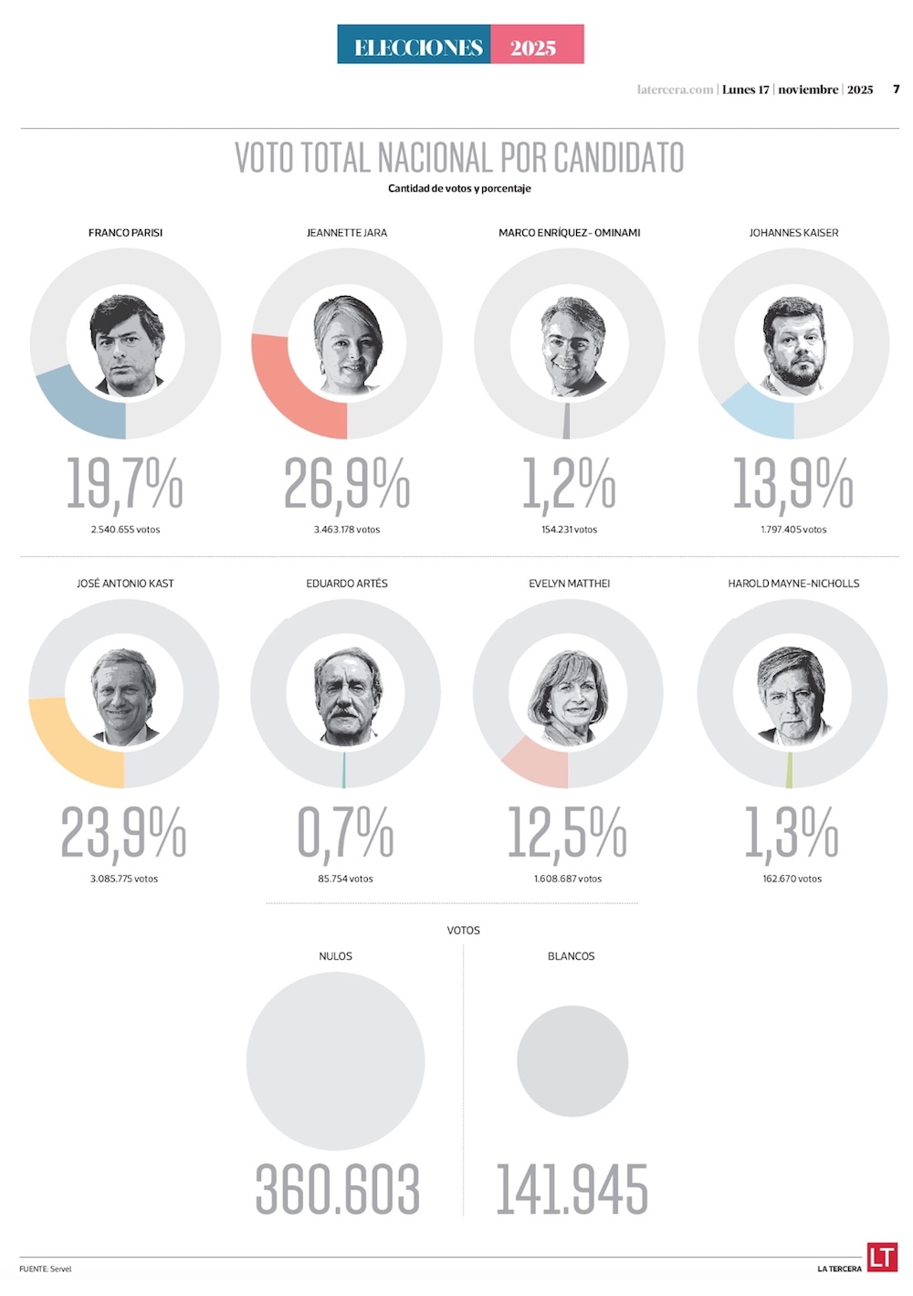 Jara y Kast medirán fuerzas en diciembre tras una primera vuelta que dejó varias sorpresas - (Diario Financiero)