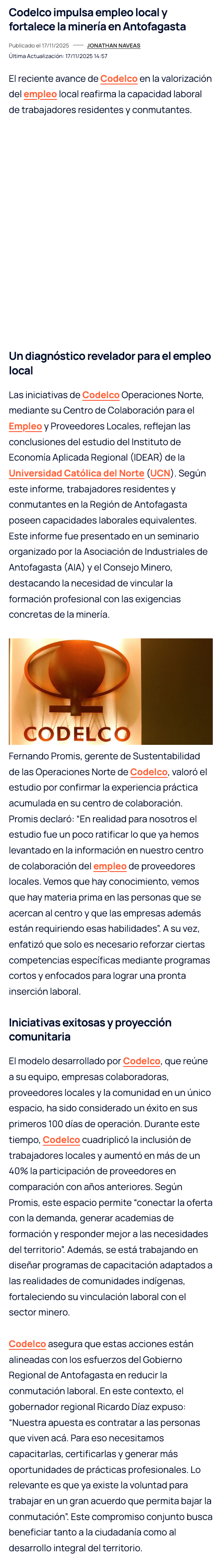 Impulso de Codelco al empleo local coincide con estudio sobre igualdad de capacidades entre trabajadores residentes y conmutantes - (mch.cl)