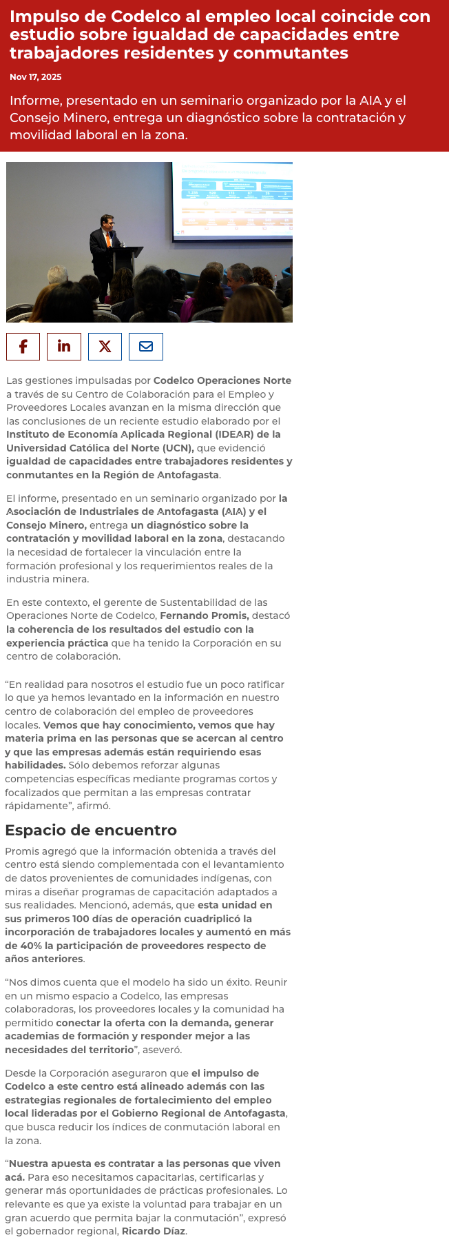 Codelco impulsa iniciativas para reducir los índices de conmutación laboral en Antofagasta - (soyantofagasta)