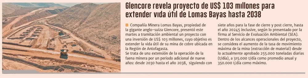 Lomas Bayas extenderá su operación hasta 2038 con una inversión de US$ 103 millones - (El Mercurio de Calama)