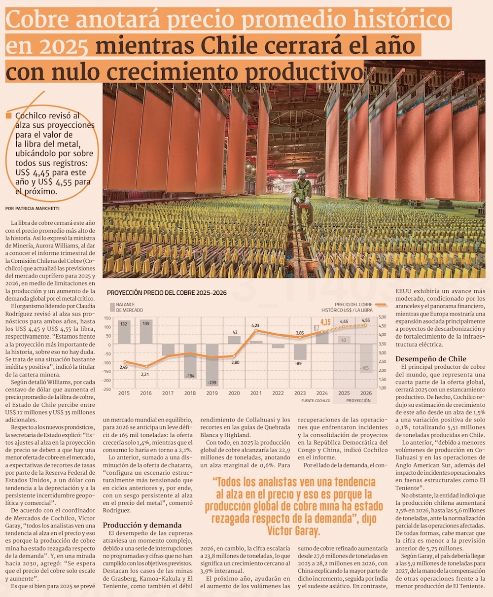 Proyectan precios históricos de la libra de cobre para 2025 y el 2026 - (El Mercurio de Antofagasta)