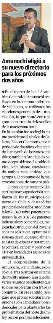 Alcalde de Calama asume directiva en la Asociación de Municipalidades del Norte - (El Mercurio de Calama)