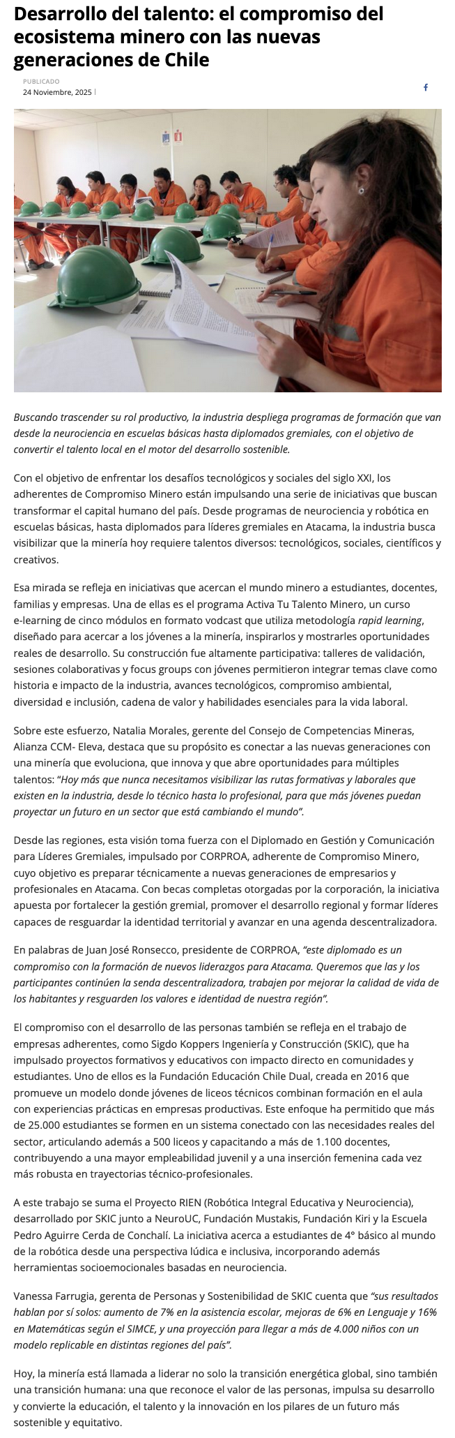 Desarrollo del talento: Compromiso Minero con las nuevas generaciones - (revistacrisol.cl)