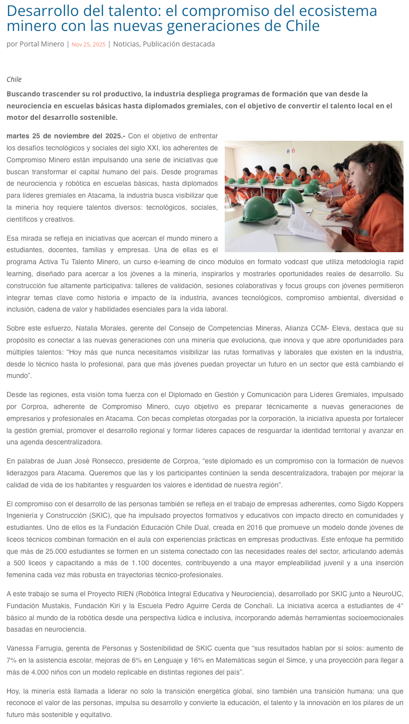 Desarrollo del talento: el compromiso del ecosistema minero con las nuevas generaciones de Chile - (construnoticias.cl)