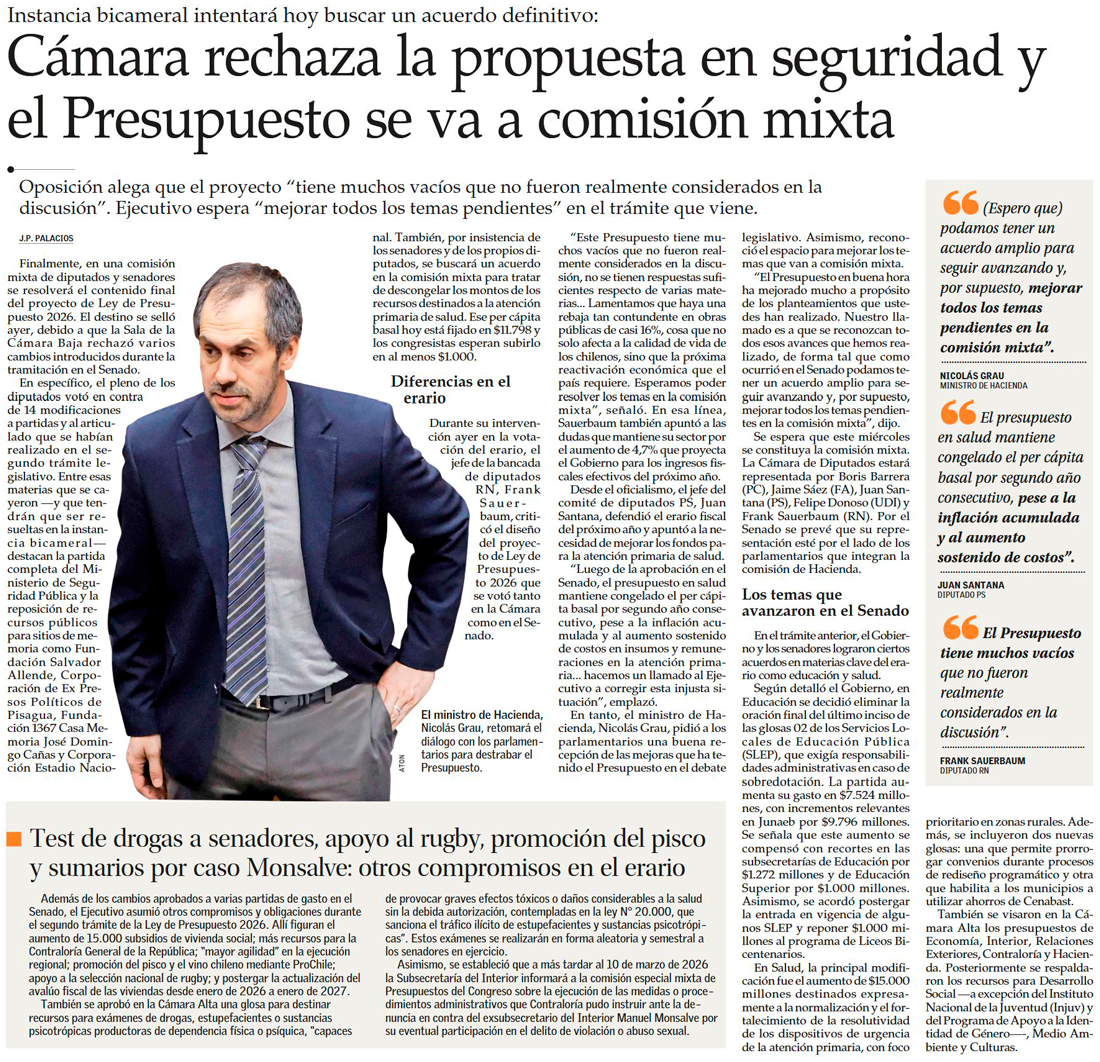 Presupuesto se va a comisión mixta por discrepancias en 14 artículos entre el Senado y la Cámara - (Diario Financiero)