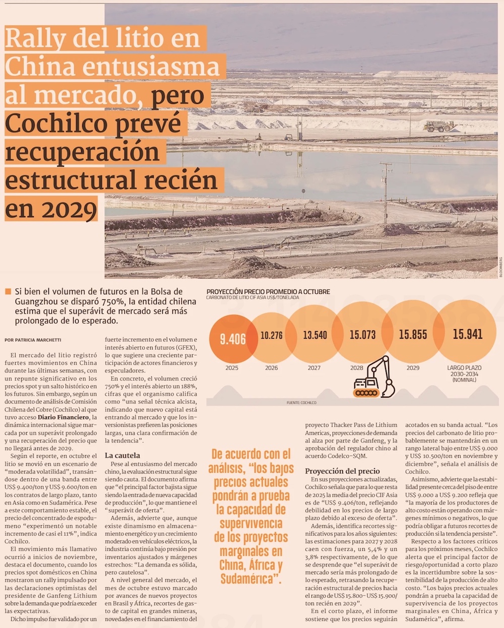 Rally del litio en China entusiasma al mercado, pero Cochilco prevé recuperación estructural recién en 2029 - (DF Online)