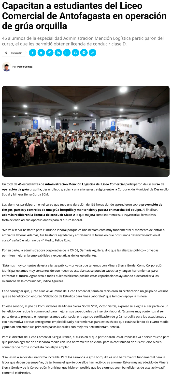 Alumnos del liceo comercial se capacitaron en grúa horquilla - (La Estrella)