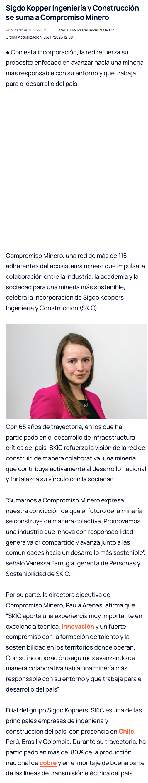 Sigdo Kopper Ingeniería y Construcción se suma a Compromiso Minero - (territoriominero.cl)