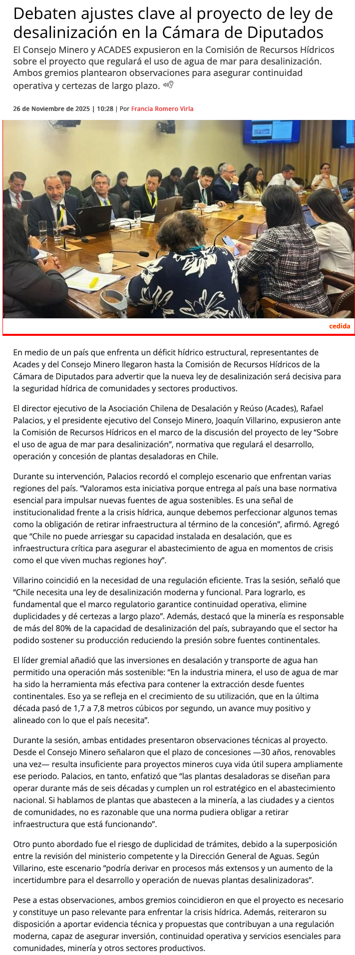 Consejo Minero y Acades entregan observaciones a proyecto de ley sobre desalinización - (mch.cl)