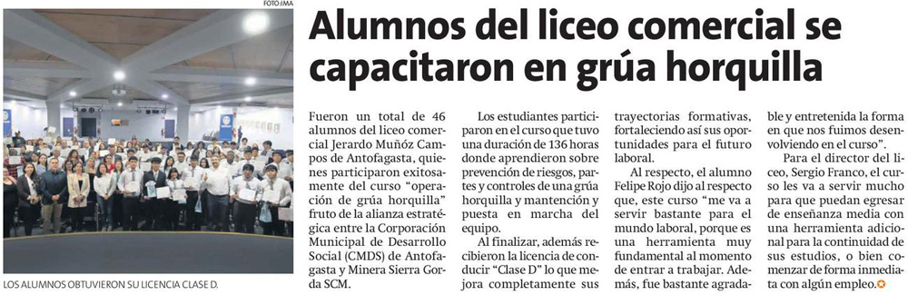 Capacitan a estudiantes del Liceo Comercial de Antofagasta en operación de grúa horquilla - (timeline)