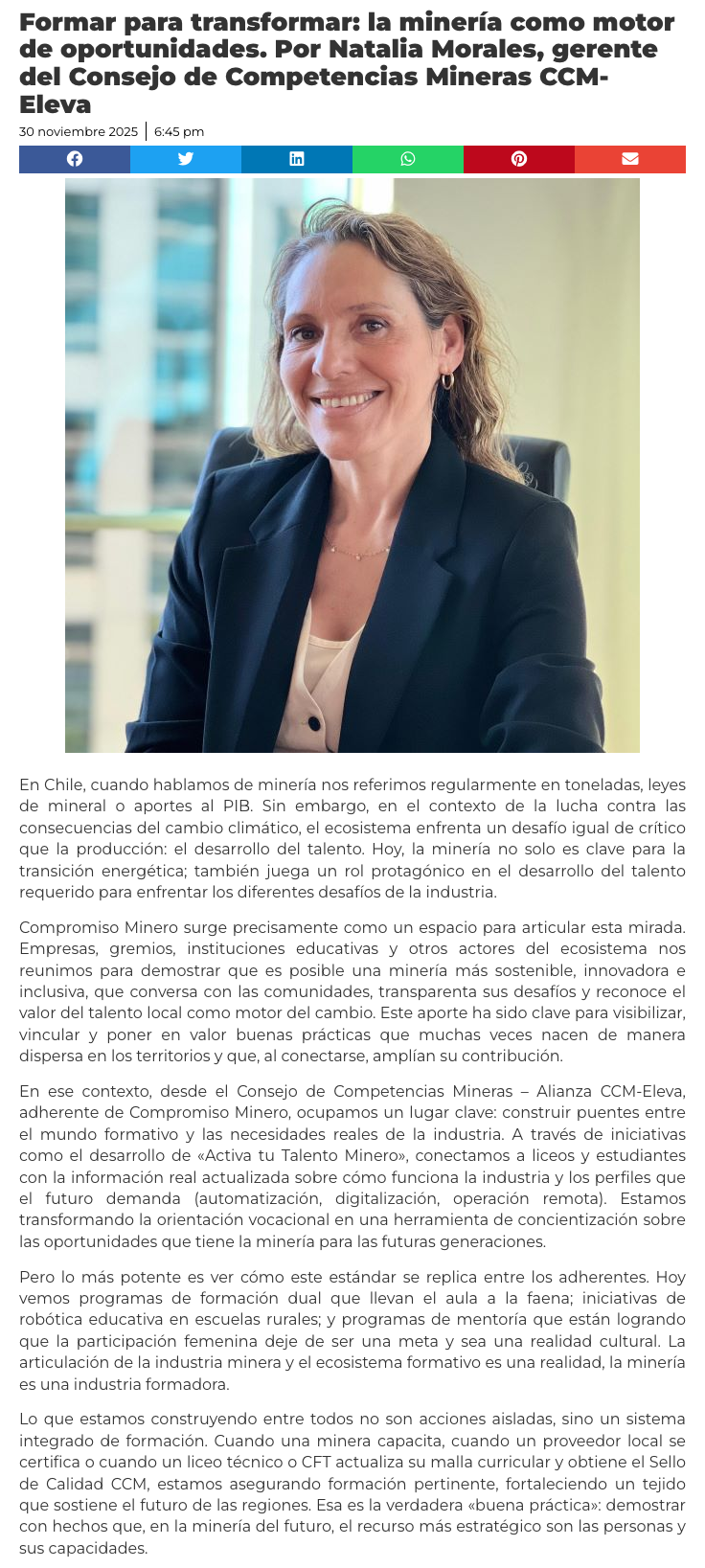 Formar para transformar: la minería como motor de oportunidades - (portalinnova.cl)