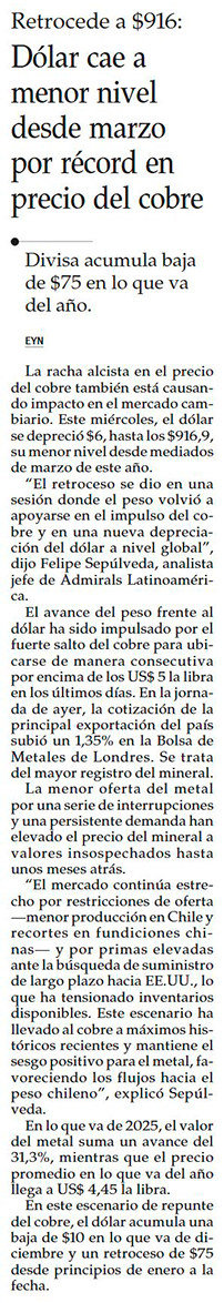 El cobre, imparable: las razones detrás del alza histórica del precio - (El Mercurio de Antofagasta)