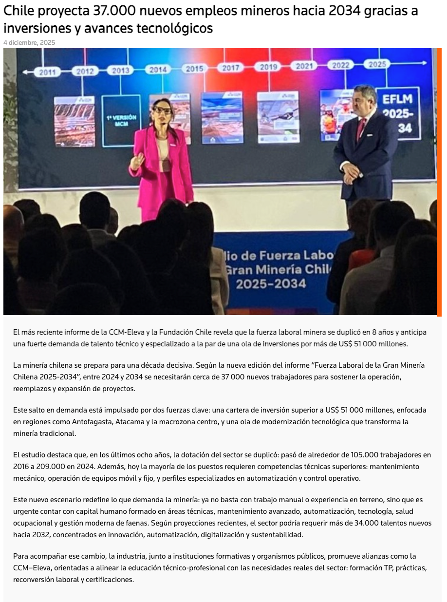 Estudio CCM-Eleva: Minería necesitará 37 mil nuevos trabajadores al 2034 y tecnología impactará demanda laboral - (soyantofagasta)