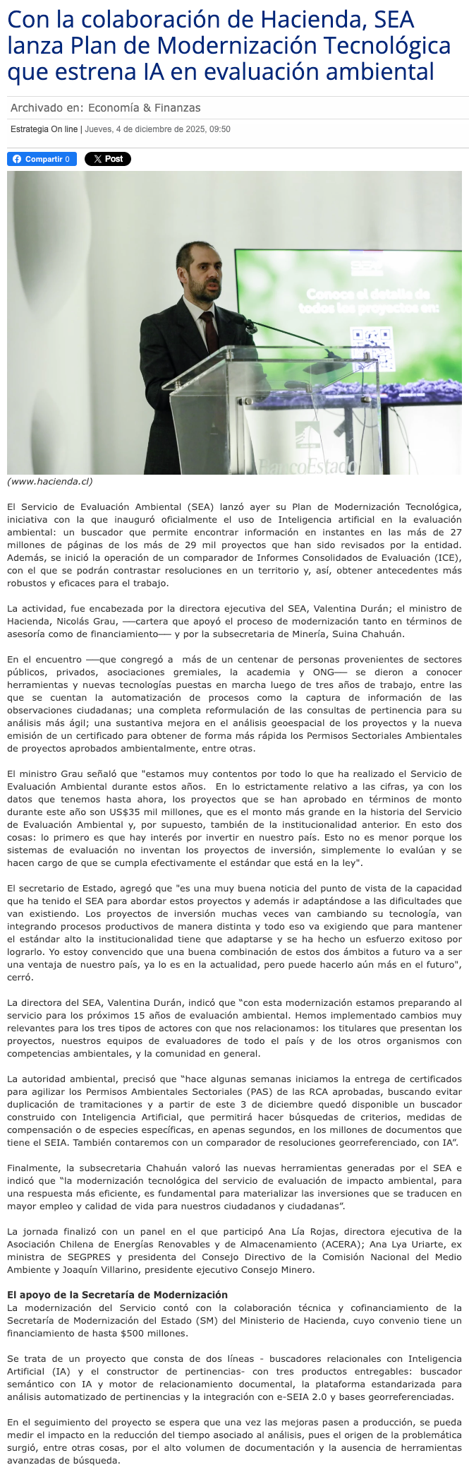 SEA lanza Plan de Modernización Tecnológica que estrena Inteligencia Artificial en evaluación ambiental - (portalminero)