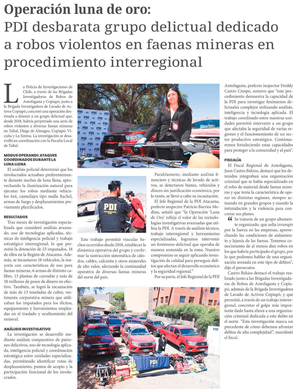 Amplio operativo policial termina con 23 detenidos por robos violentos a la minería desde el 2018 - (El Diario de Atacama)