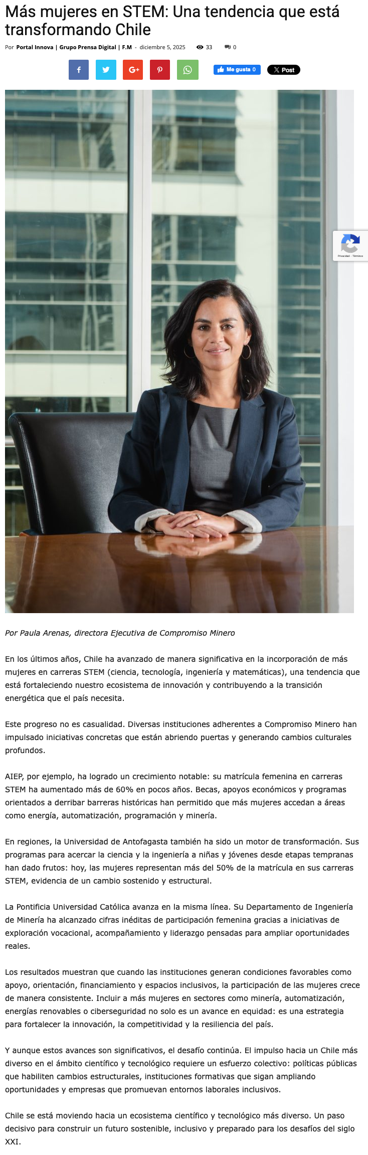 Más mujeres en STEM - (El Mercurio de Calama)