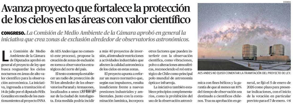 Informe propone reforzar protección del cielo oscuro del Desierto de Atacama - (La Estrella)