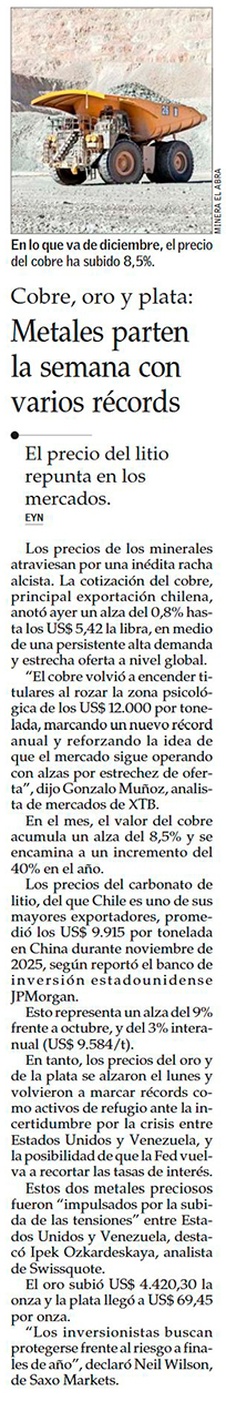 El oro y la plata marcan su mejor desempeño en cuatro décadas y el cobre alcanza récord en Londres - (Diario Financiero)