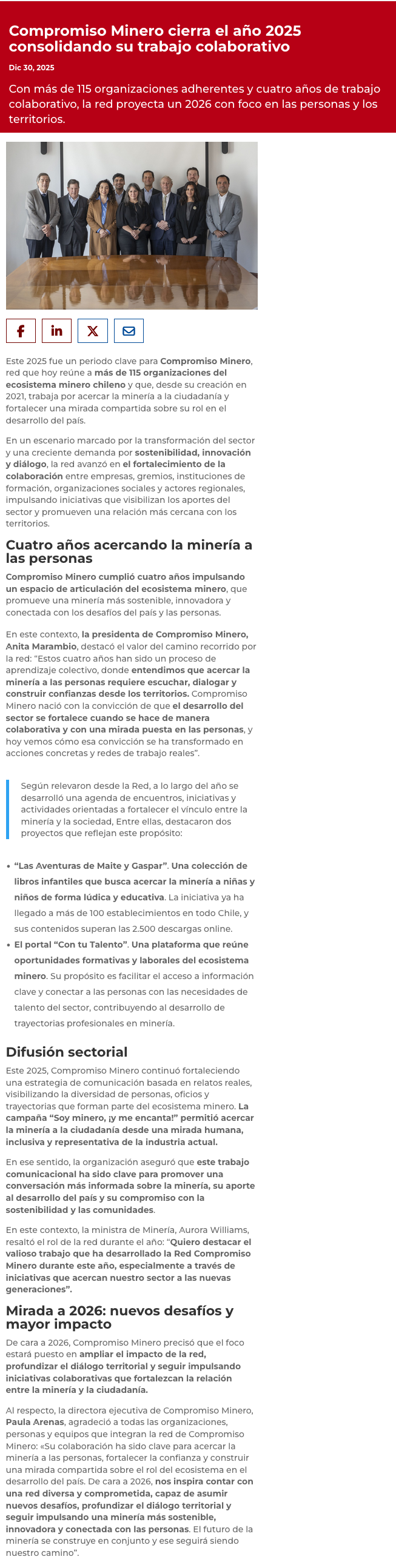 Compromiso Minero cierra 2025 consolidando su trabajo colaborativo y proyecta un 2026 con foco en las personas y los territorios - (atacamaenlinea.cl)