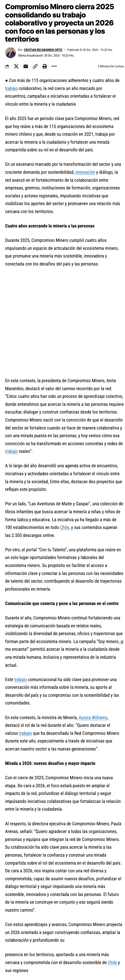 Compromiso Minero cierra el año 2025 consolidando su trabajo colaborativo - (mch.cl)