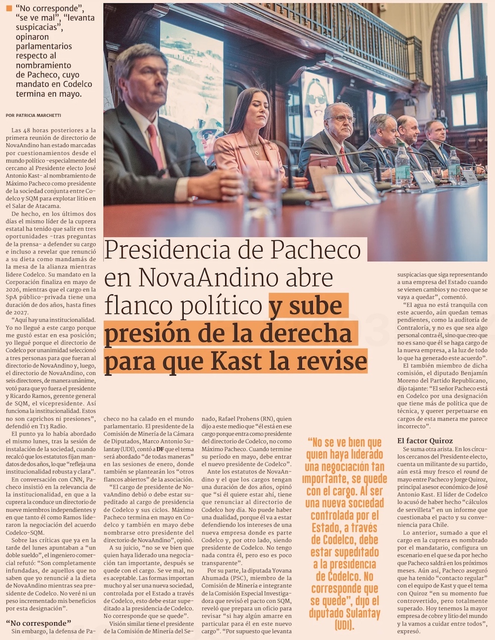 Califican como "una vergüenza histórica" concreción del acuerdo Codelco-SQM y Nova Andino - (El Noticiero del Huasco)