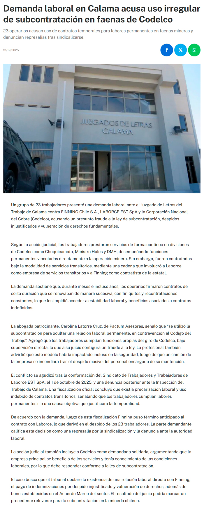 Miércoles, 31 de Diciembre de 2025
