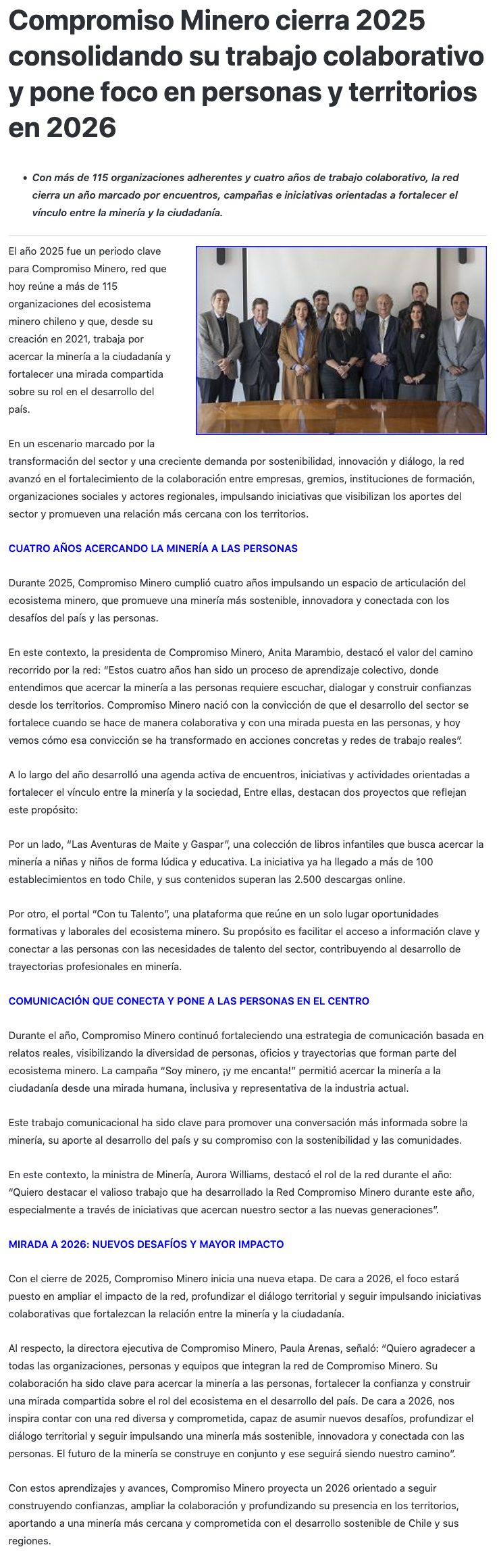 Compromiso Minero cierra 2025 consolidando su trabajo colaborativo y proyecta un 2026 con foco en las personas y los territorios - (El Longino de Alto Hospicio)