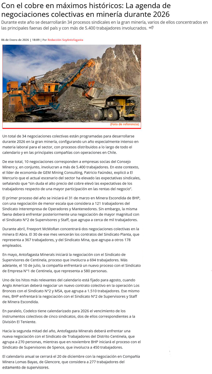 Con cobre en niveles históricos: El calendario de las negociaciones colectivas mineras en 2026 - (emol)