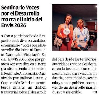ENVIS revela los consensos que marcan la idea de desarrollo en Chile - (El Mercurio de Antofagasta)
