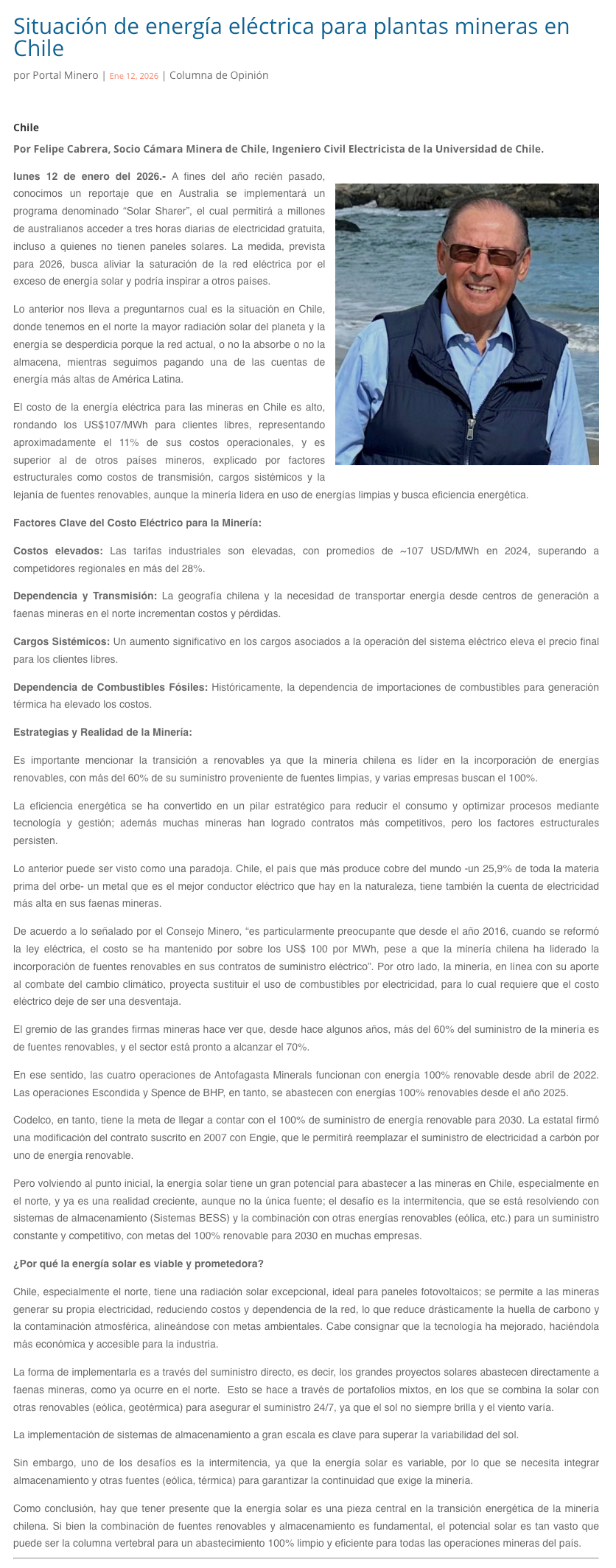 Situación de Energía Eléctrica para Plantas Mineras en Chile - (portalinnova.cl)