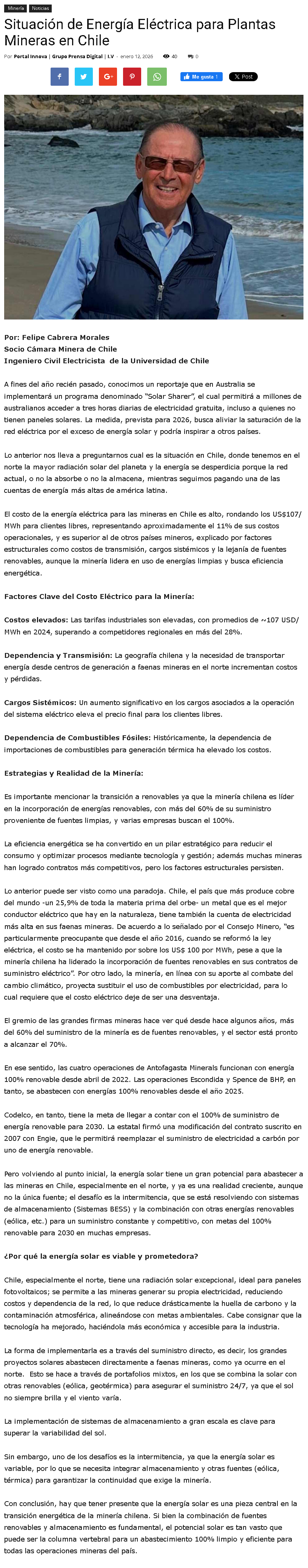 Situación de Energía Eléctrica para Plantas Mineras en Chile - (mvcomunicaciones.cl)