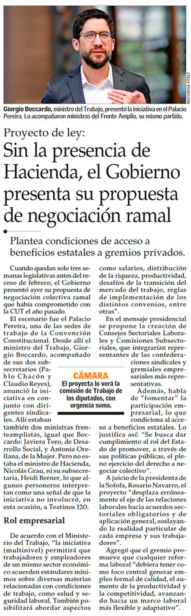Gobierno ingresa proyecto de negociación ramal y comisión de Trabajo inicia este martes su discusión - (Pulso)