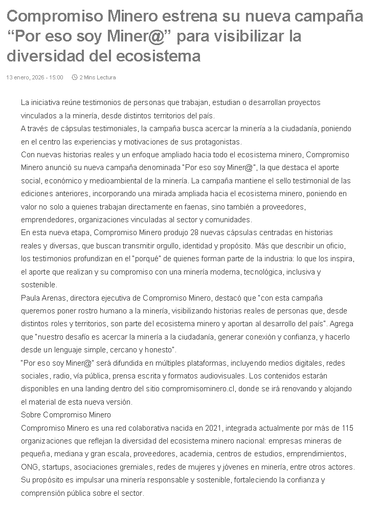 Compromiso Minero estrena su nueva campaña “Por eso soy Miner@” para visibilizar la diversidad del ecosistema - (portalinnova.cl)