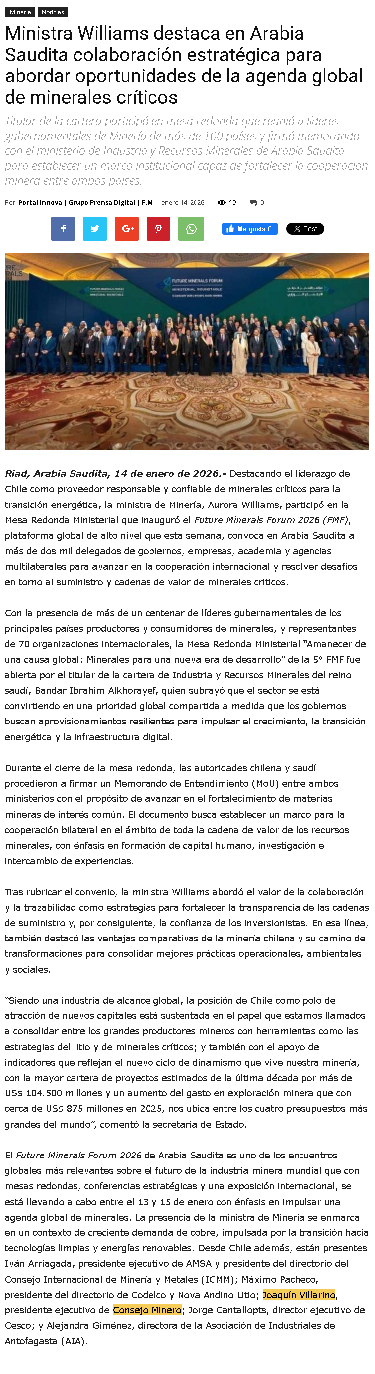 Ministra Williams destaca en Arabia Saudita colaboración estratégica para abordar la agenda global de minerales críticos - (nuevaminería online)