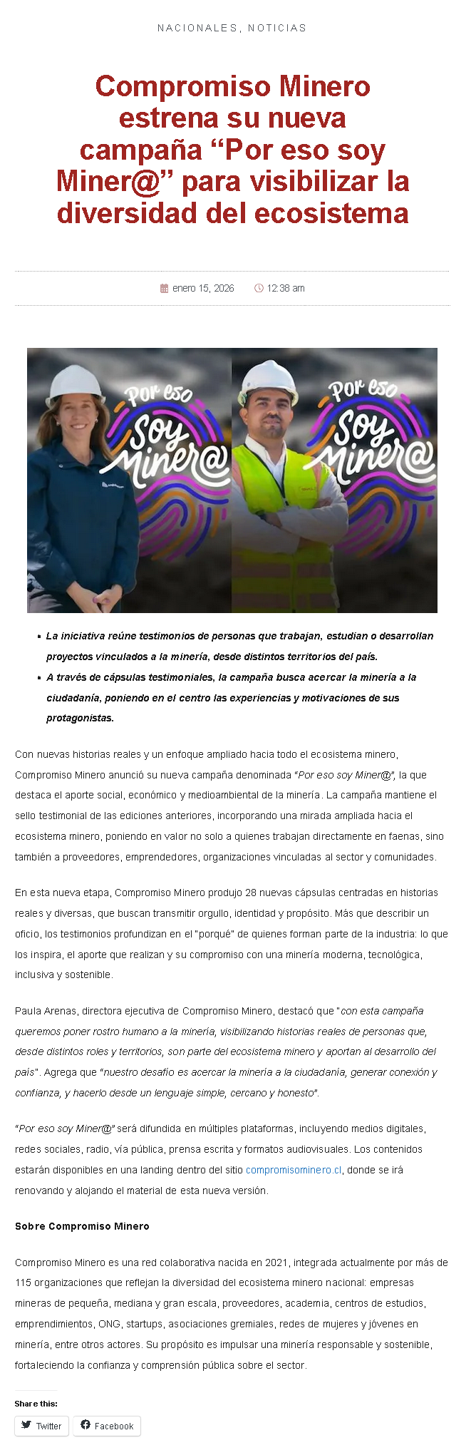 Compromiso Minero estrena nueva campaña para visibilizar la diversidad del ecosistema - (mch.cl)