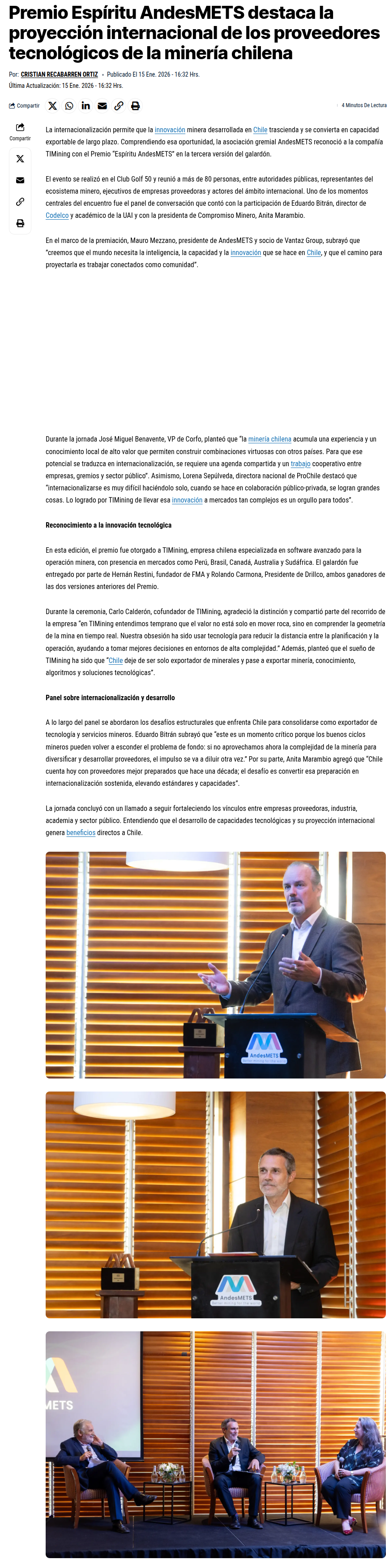 AndesMETS distingue a TIMining por proyección global de innovación minera - (territoriominero.cl)