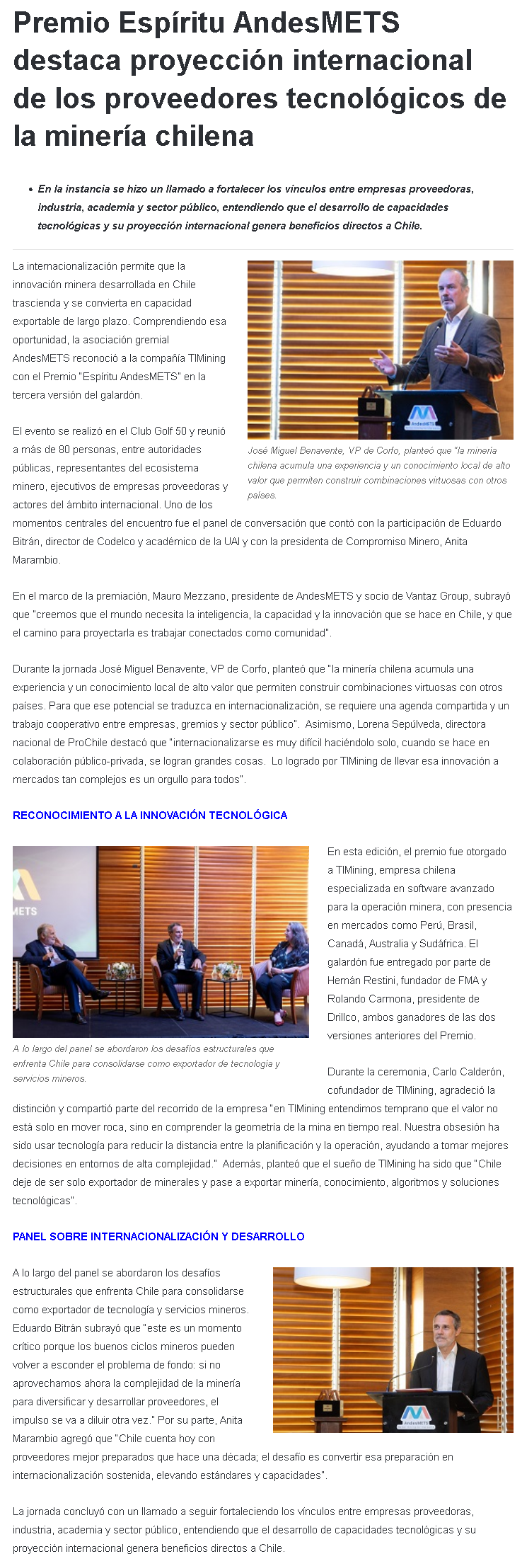 Premio Espíritu AndesMETS destaca la proyección internacional de los proveedores tecnológicos de la minería chilena - (nuevaminería online)