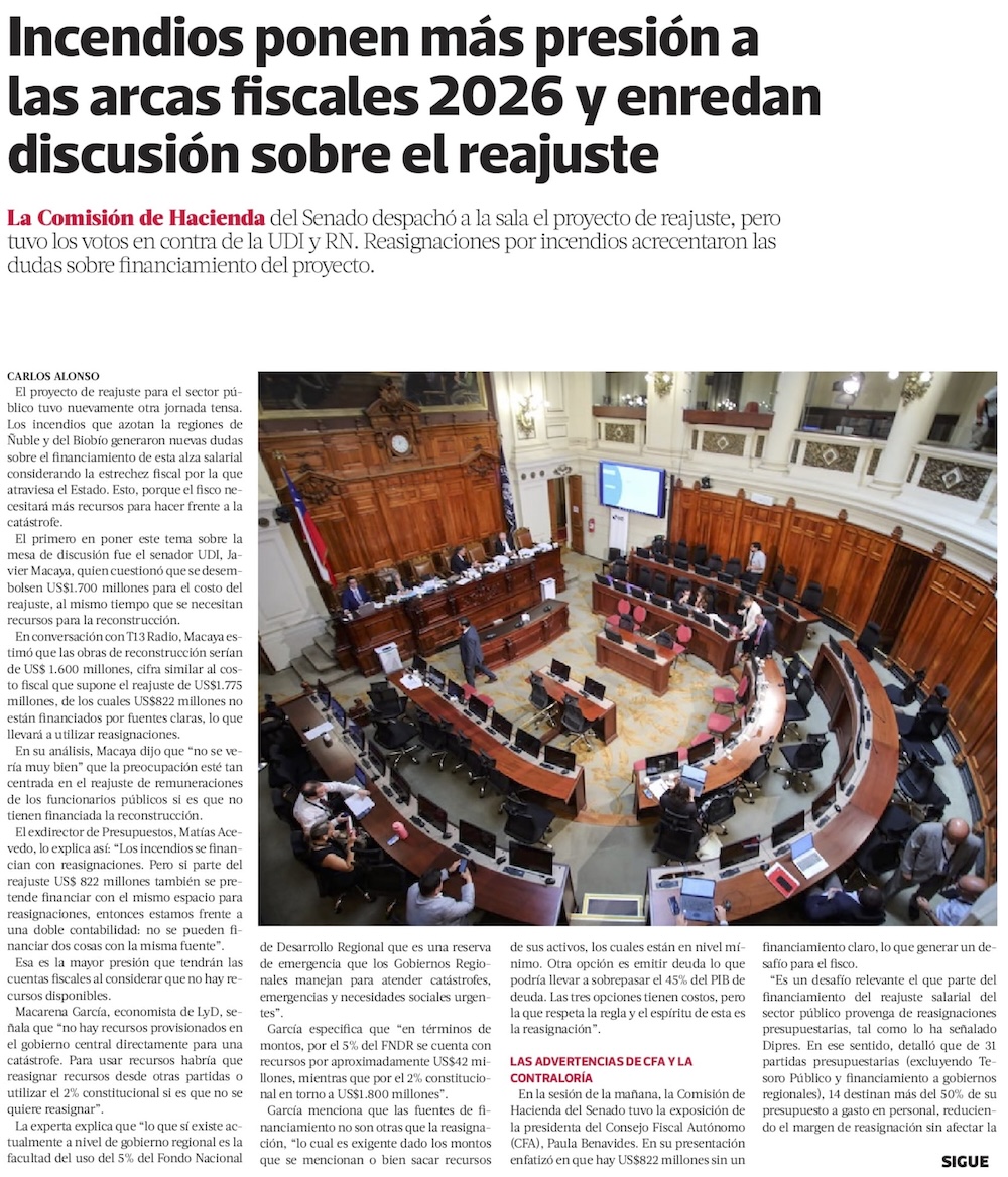 Se intensifican daños por incendios y Contraloría advierte que emergencia pone en riesgo financiamiento del reajuste - (Diario Financiero)