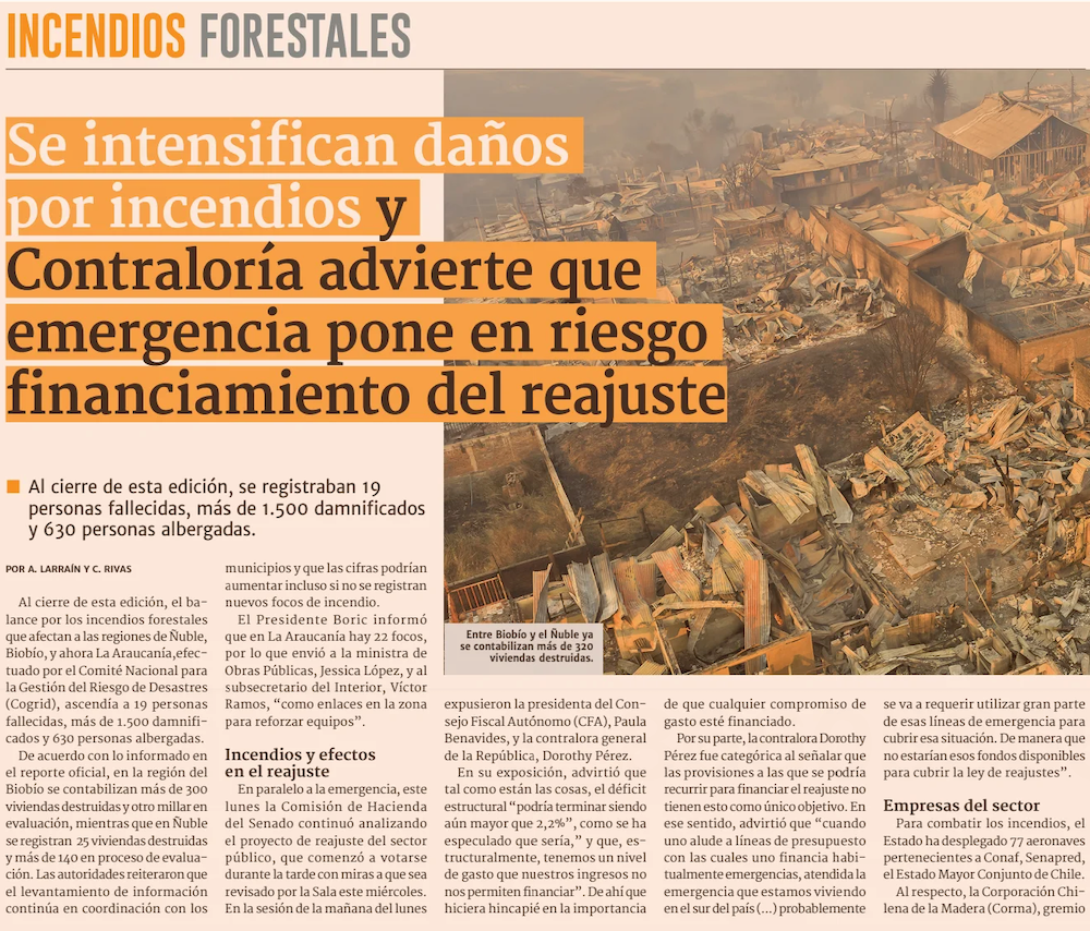 Incendios en el Biobío y Ñuble generan pérdidas iniciales por más de US$ 400 millones - (El Mercurio de Santiago)