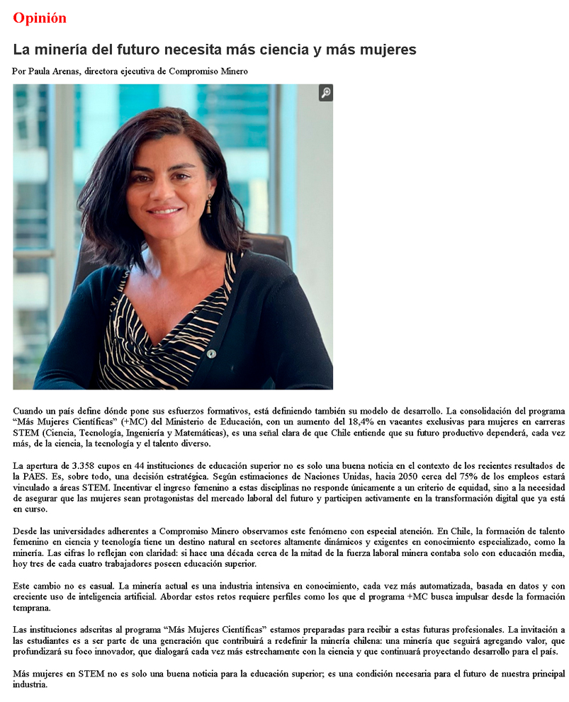 La minería del futuro necesita más ciencia y más mujeres - (guiaminera.cl)
