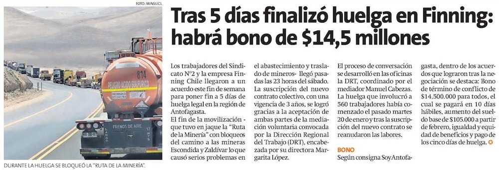 Huelga de trabajadores de Finning en Antofagasta llega a su fin tras acuerdo y labores se retoman este lunes - (La Tercera Online)