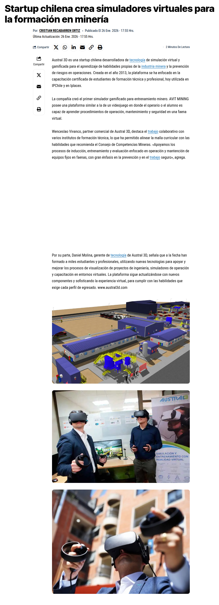 Startup chilena crea simuladores virtuales para la formación en minería - (portalinnova.cl)