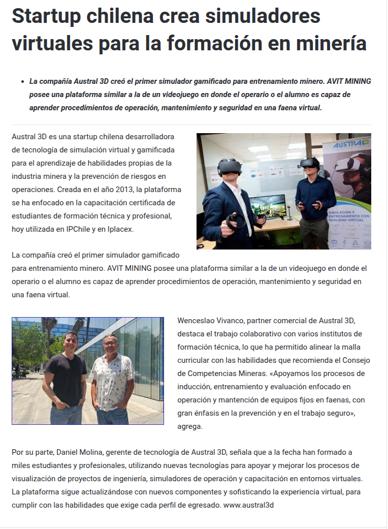 Startup chilena crea simuladores virtuales para la formación en minería - (tierramarillano.cl)
