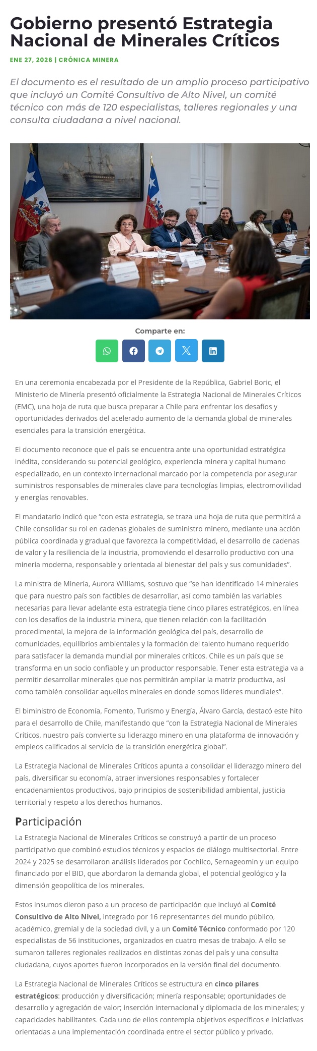 Presentan la Estrategia Nacional de Minerales Críticos: conozca los cinco ejes centrales de la iniciativa - (mch.cl)