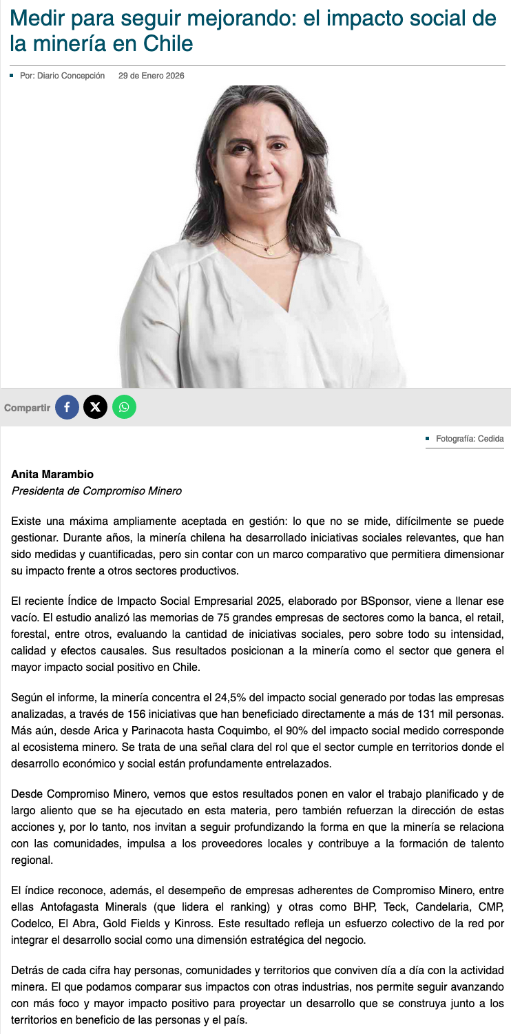 Medir para seguir mejorando: el impacto social de la minería en Chile - (Diario Concepción)