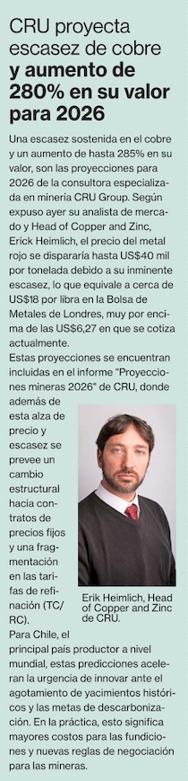 Erik Heimlich, CRU: Un crecimiento sobre el 3% de cobre refinado mundial no se veía desde 1950 - (Pulso)